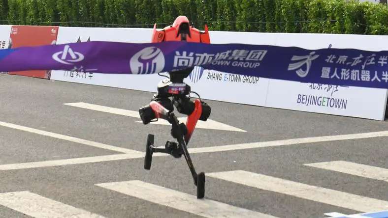 一年后,赛场规则本身发生变化,陪跑员被取消,人工干预被严格限制,场内外换电会直接影响成绩计算,有40%的机器人实现了自主导航。人形机器人第一次独立面对一条复杂而漫长的真实道路。但最快完赛时间直接缩短近两个小时,最短完赛时间为50分26秒,机器人从面前掠过,只剩一道残影。