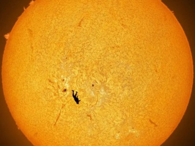 一名跳伞者纵身一跃,在太阳前形成完美剪影。背景凸显了太阳黑子——形成于太阳表面强磁场阻挡热量上升的区域。天文摄影师Andrew McCarthy和跳伞者Gabriel Brown花费数月做计划,借助特殊太阳望远镜精准捕捉了这个画面。